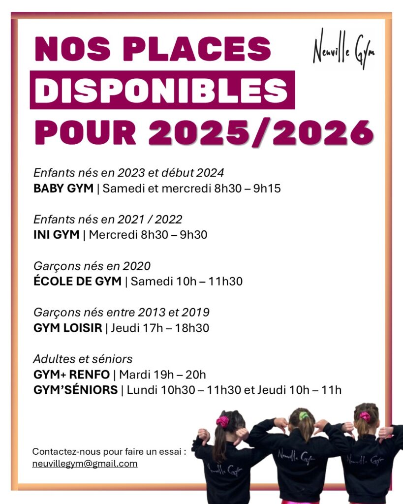 Contactez-nous pour toute question ou demande d’essai : neuvillegym@gmail.com