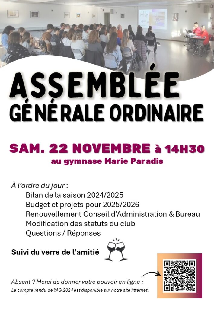 L’occasion de dresser le bilan de la saison passée, présenter les projets pour celle à venir, poser toutes vos questions et échanger avec nous !