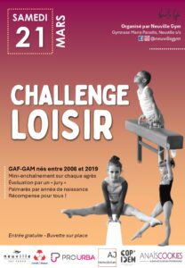 Trois saisons plus tard, le Challenge loisir de Neuville Gym est de retour ! Samedi 21 mars, plus de 150 enfants des groupes GAF / GAM loisir du club vont participer à cette « compétition » interne.