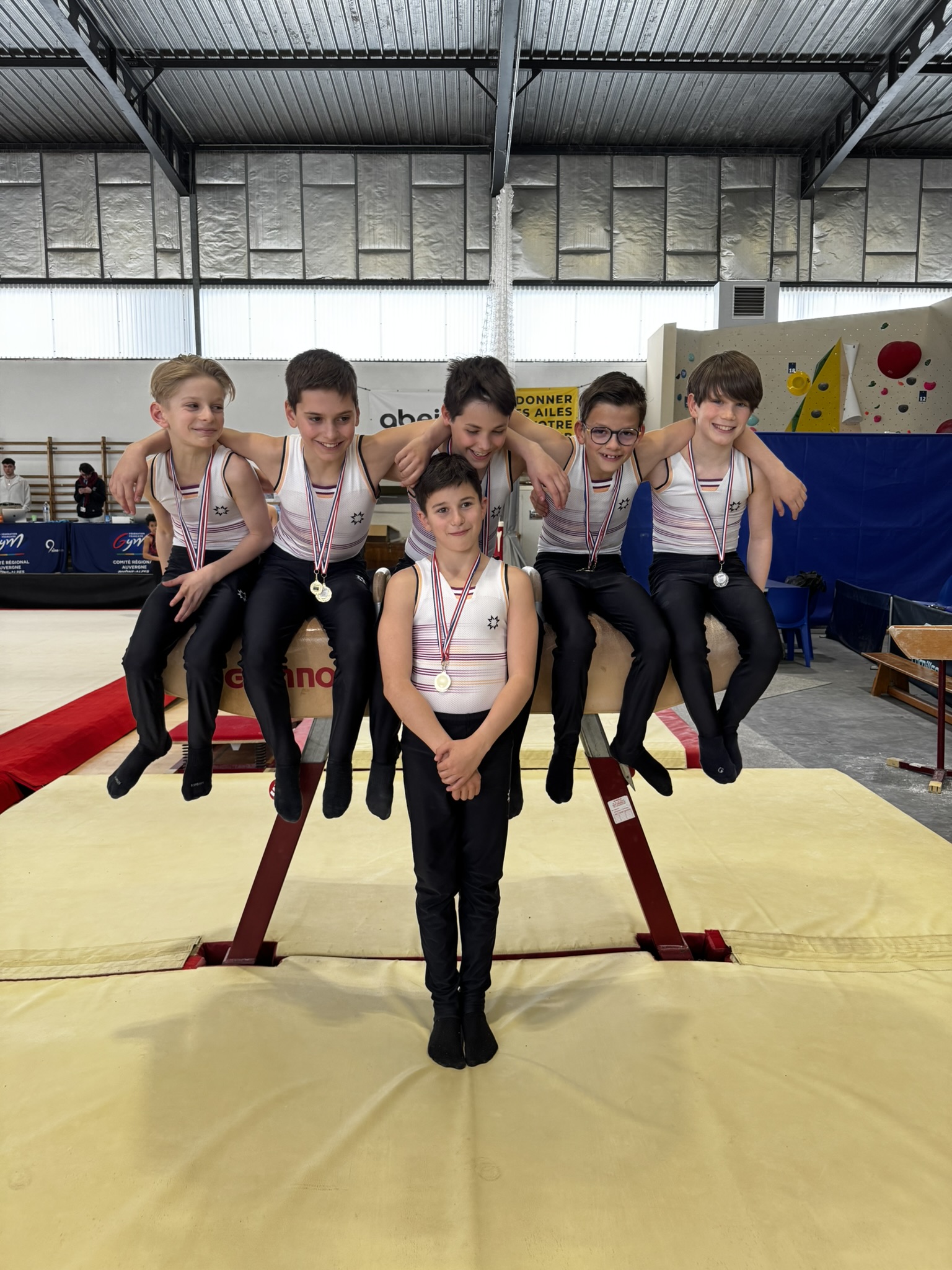 Equipe de Ewen, Nils, Leony, Alexis, Thomas et Timéo : 11ème Le mot du coach Flo : « On partait avec un handicap puisque notre meilleur gymnaste généraliste était blessé au biceps (Nils). Compétition difficile avec des erreurs, mais qui va permettre aux gars de renforcer leur expérience. On va tout donner pour la prochaine compétition régionale et aller chercher la qualification pour les championnats de France. »