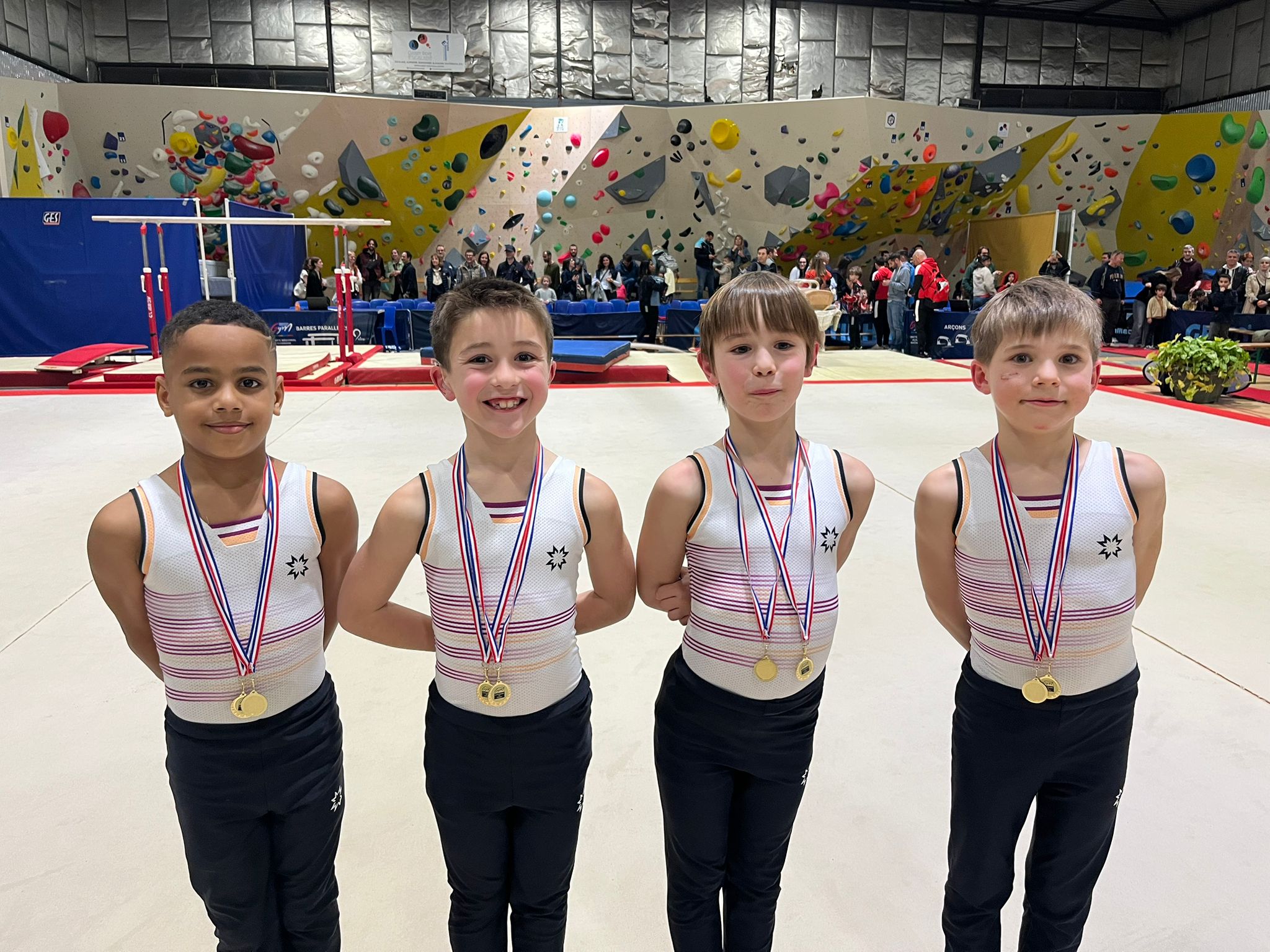 Anatole A, Nolan, Anatole M : 3ème Le mot du coach Nils : « Une bonne entrée en compétition pour les garçons qui n’ont rien lâché malgré les difficultés rencontrées. Nous avons pu nous jauger sur les 6 agrès, retour désormais à l’entraînement pour continuer de progresser et peaufiner les mouvements. »