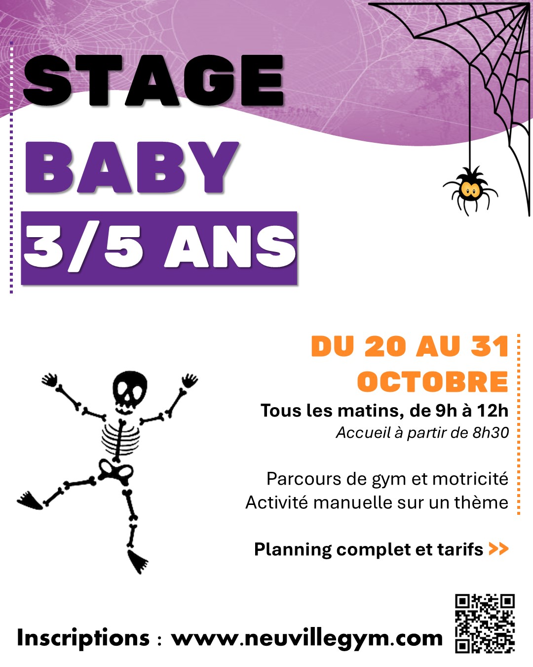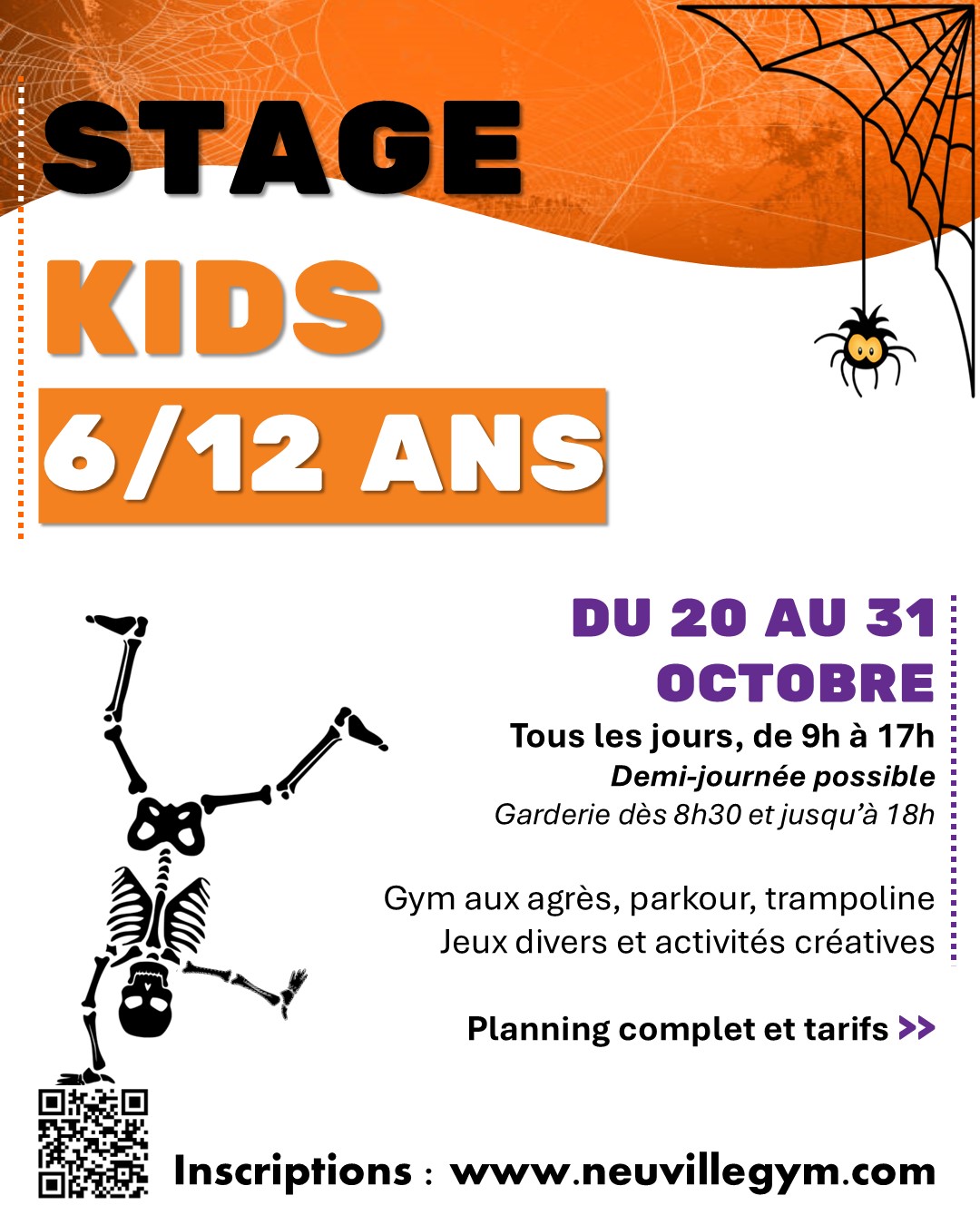Neuville Gym propose deux stages ouverts à tous pendant les vacances scolaires de Toussaint, du 20 au 31 octobre 2025 :