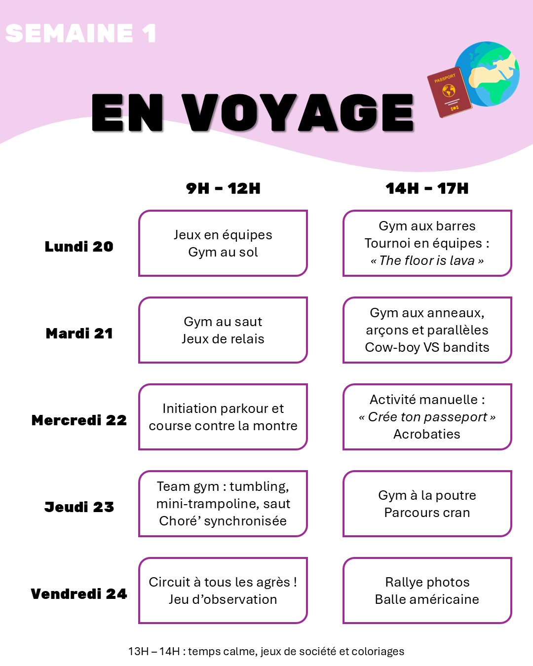 Planning des activités et tarifs disponibles ci-dessous.