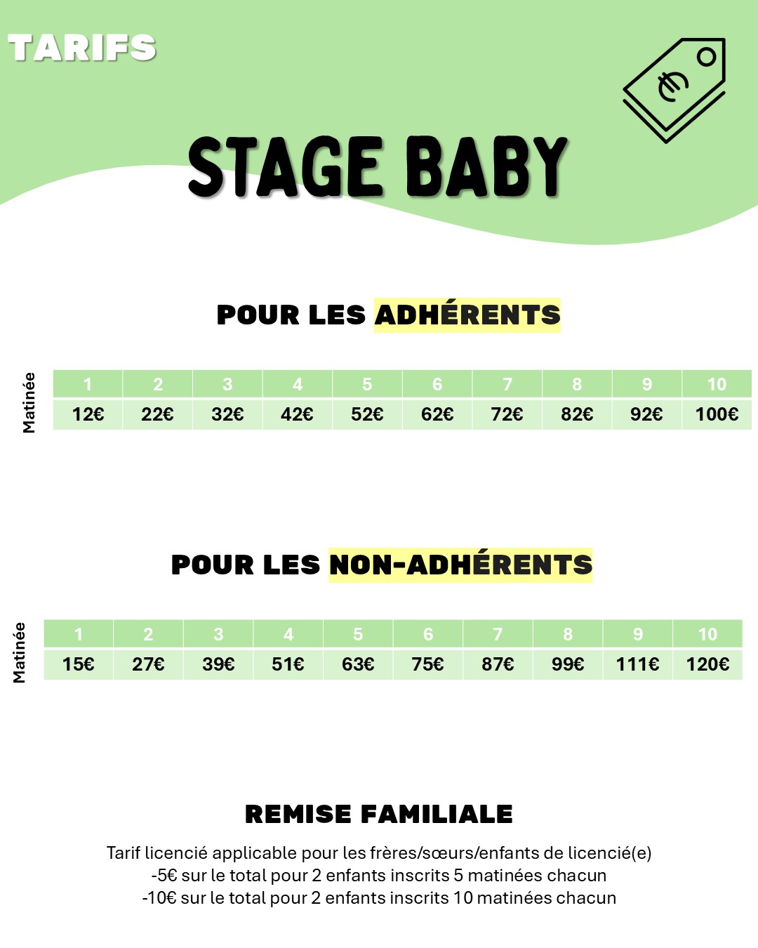 Stage Baby : places disponibles tous les matins, sauf le 13 et 14